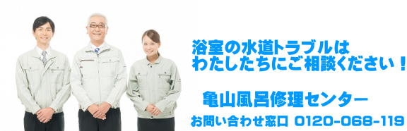 亀山風呂修理センターは亀山市の浴室修理専門業者です。シャワーの水漏れ、水圧が弱い、排水溝の流れが悪い、水栓の交換がしたいなどお気軽にお問い合わせください。